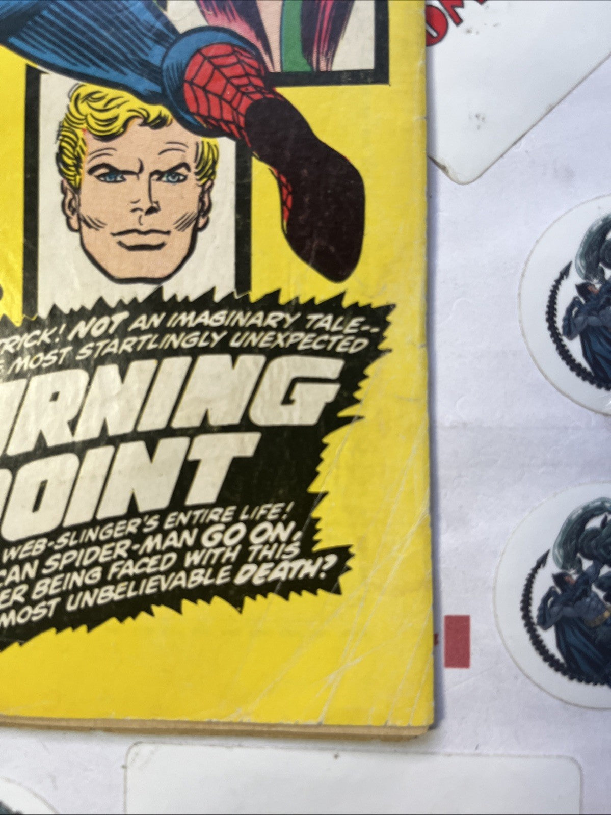 Death of Gwen Stacy in "The Night Gwen Stacy Died" Part 1 of 2. Script by Gerry Conway. Pencils by Gil Kane. Inks by John Romita and Tony Mortellaro(backgrounds). Cover by John Romita. One of the greatest Spider-Man stories of all-time! Peter Parker returns from Canada to find his world on fire! His roommate Harry Osborn has overdosed again, and Norman Osborn is blaming Peter for his son's relapse. As the situation becomes more and more stressful, Norman recalls his super-villain past -- and the Green Goblin lives once more! However, this version of the goblin is more sick and twisted than previous ones. And to get revenge against the web-slinger, the goblin kidnaps Gwen and takes her to the top of the Brooklyn Bridge. Sothen and there, the Amazing Spider-Man and the Green Goblin fight for the life of Gwen Stacy. But sometimes the good guys don't win. A heartbreaking ending. Cameo appearances by Mary Jane Watson, J. Jonah Jameson, and Joe Robertson. (Notes: This two-part story was a watershed event in the history of Marvel Comics. This issue was reprinted in Marvel Tales #98 and again in issue 192.) 36 pages. Cover price $0.20.