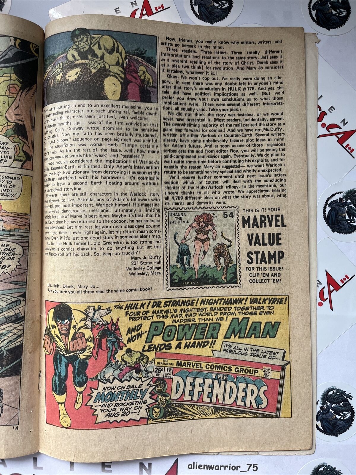 INCREDIBLE HULK 181 First full Wolverine story (cameo appearance in previous issue). Cover art by Herb Trimpe. And Now...The Wolverine!, script by Len Wein, pencils by Herb Trimpe, inks by Jack Abel; Canadian super-agent Wolverine teams up with the Hulk to battle Wendigo; Once the monster is felled, however, Wolvie turns on the Hulk and the two battle; Marie goes ahead with her plans of trying to transfer the power of the Wendigo into the Hulk but when the guilt becomes too much for best friend Georges who feels responsible for Paul's monstrous condition, he works the change on himself; Paul Cartier is returned to human form and Georges becomes the Wendigo. Wendigos story continues in Monsters Unleashed 9.Marvel Value Stamp #54 (Shanna). Letter from Mary Jo Duffy. 36 pgs. $0.25. Cover price $0.25.